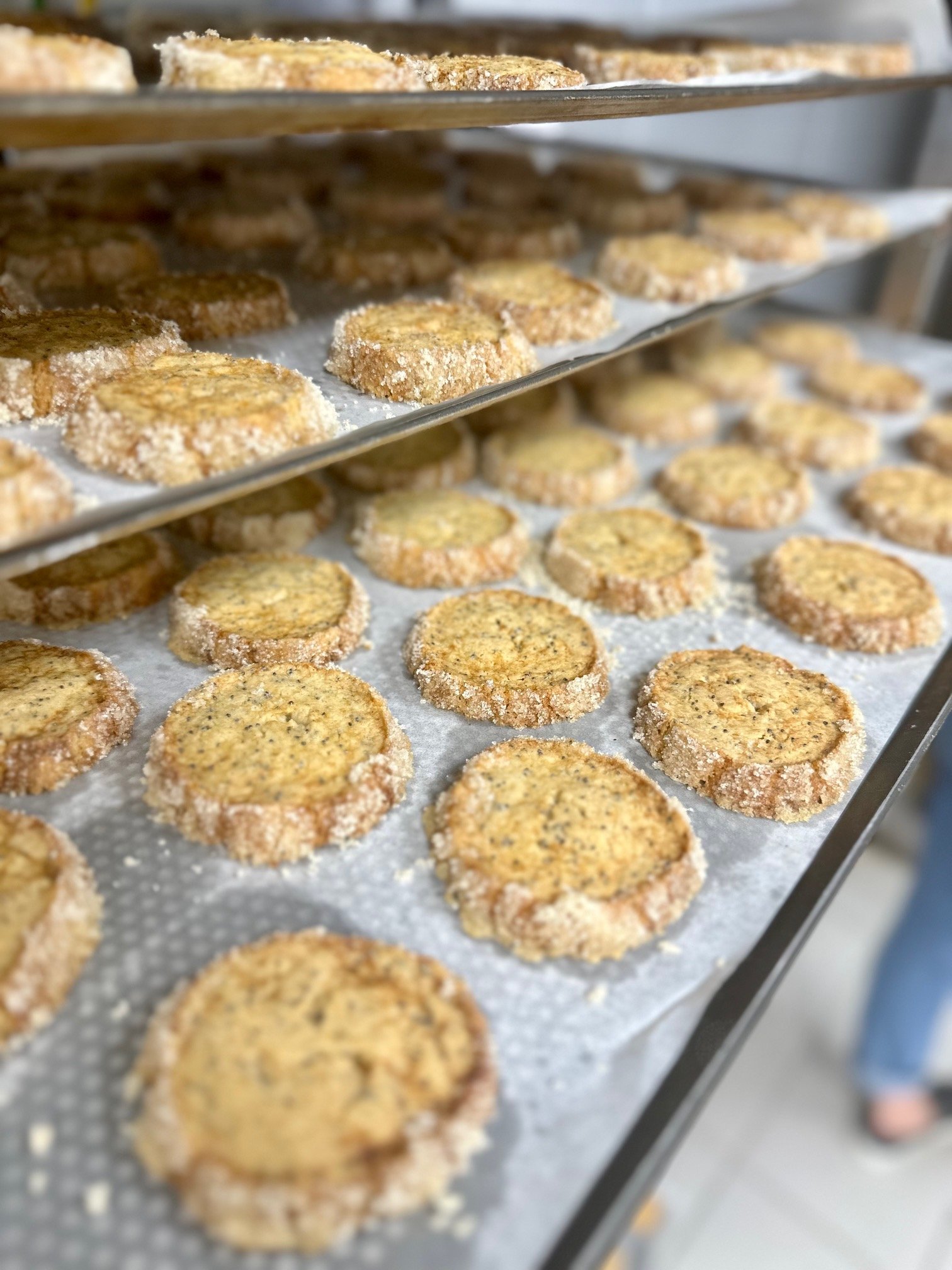 Farine de blé semi-complète, Beurre, Sucre blond, Citron frais (jus et zeste), Pavot